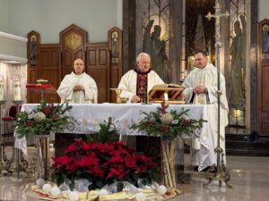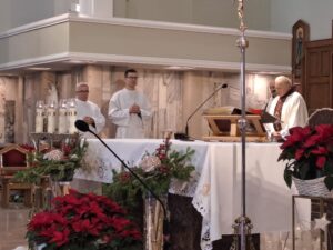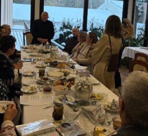 Po umocnieniu duchowym, w pięknie przygotowanym i ustrojonym refektarzu, odbyło się radosne spotkanie opłatkowe, w którym uczestniczyli również członkowie wspólnoty św. Józefa oraz Róży Różańcowej św. Józefa działającej przy klasztorze karmelitów bosych, a także księża z parafii Świętej Rodziny, obecny proboszcz, ks. Dariusz Bondyra, emerytowani proboszczowie ks. Ryszard Jurak i ks. prał. dr Tadeusz Pajurek. W ciepłej i rodzinnej atmosferze Bożonarodzeniowych Świąt podzieliliśmy się opłatkiem, życząc sobie nawzajem Bożego błogosławieństwa, zdrowia oraz potrzebnych łask na nowy rok. Każdy otrzymał też życzenia z fragmentami Pisma Świętego. Podczas spotkania mieliśmy możliwość degustacji domowych pysznych sałatek, dań i przystawek, ciasta, i innych słodkości. Przy akompaniamencie gitarowym zaśpiewaliśmy wiele kolęd oraz pieśni karmelitańskich. Dziękując Bogu i Świętej Rodzinie za tak pięknie przeżyty czas, zakończyliśmy pełne życzliwości, radości i wdzięczności spotkanie.